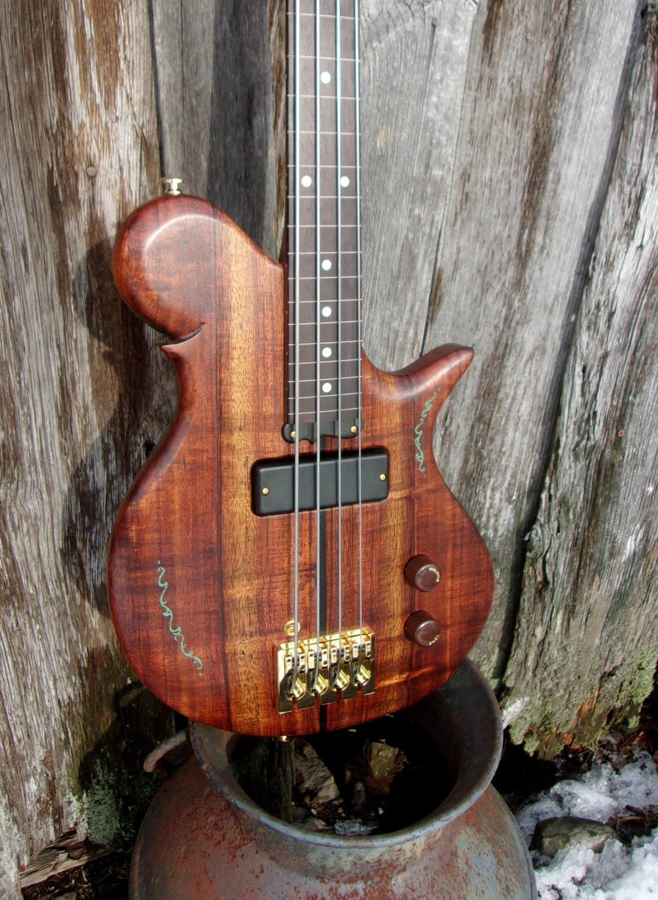 I’ve been all about short scale since my first bass build in 1998, founding and building Birdsong basses in Texas since 2004. Along the way, I applied all I’d learned to design an even SHORTER “pocket bass” that worked, and it did!